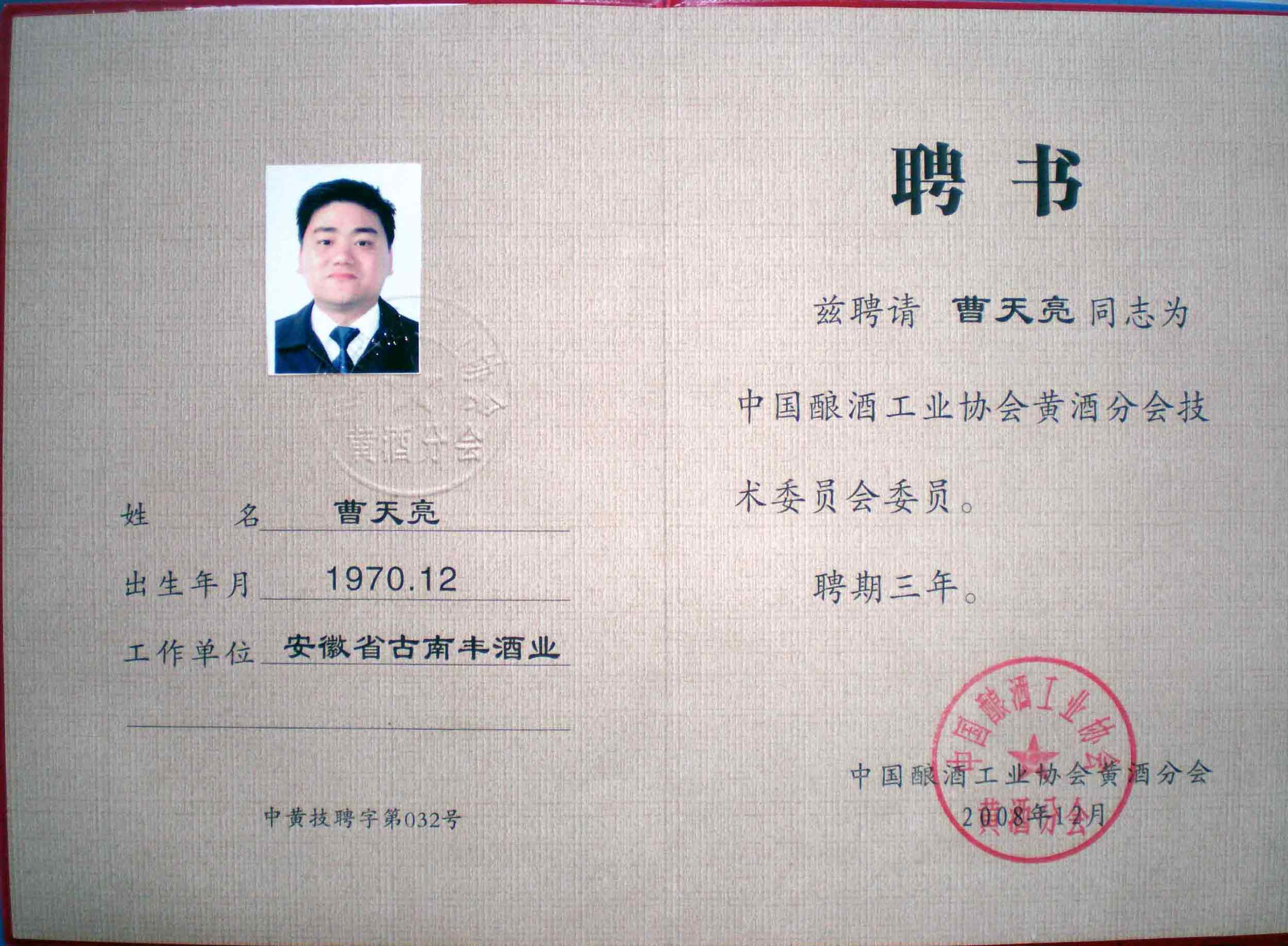中国黄酒保健、安全、创新、发展论坛暨黄酒技术委员会换届会议于12月20日在上海召开,我公司副总经理曹天亮当选为中国酿酒工业协会黄酒分会技术委员会委员。