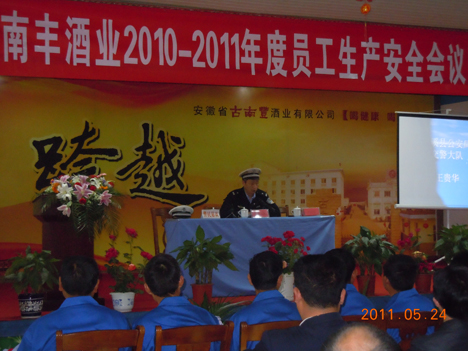 为使全体职工加强安全意识,2011年5月24日下午,我县南丰镇派出所与古南丰酒业有限公司联合举办了一次“警企互动,共话安全”的宣传讲座。南丰镇派出所所长 、警官与公司出席讲座。此次讲座也正值古南丰酒业公司5·24安全日,通过这样的宣讲培训,增强了职工的法制意识和安全意识,同时也为共同预防打好基础。