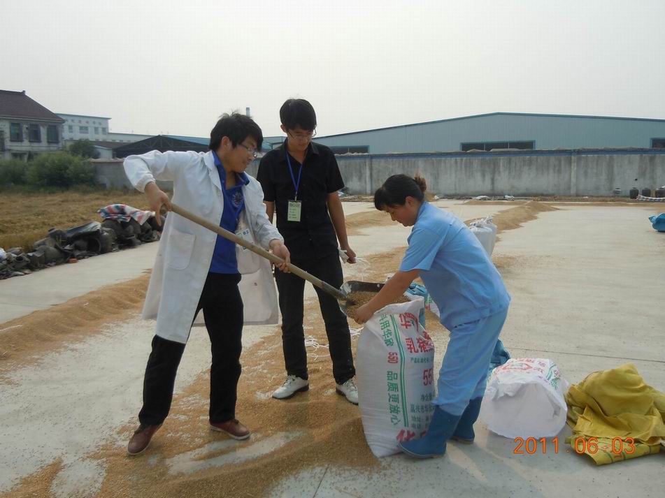 图为行管人员在收储小麦