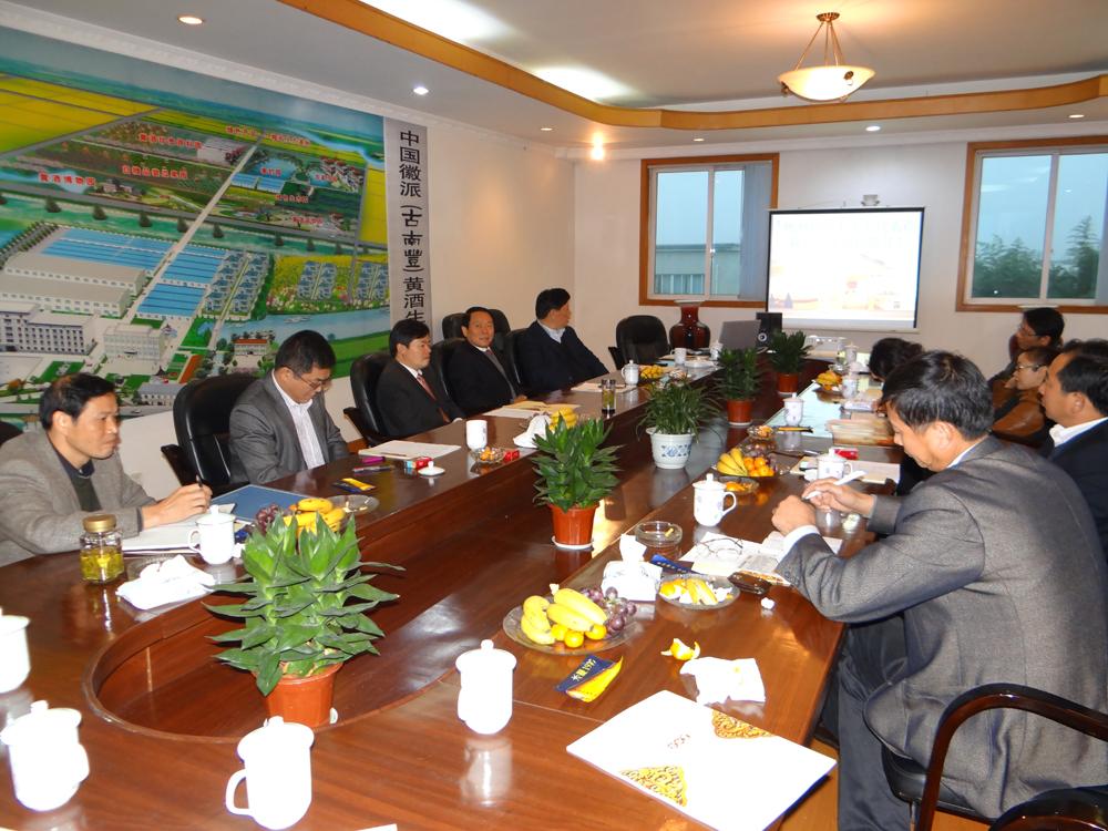 2012年11月9日,在党的十八大隆重召开之际,市人大代表在县人大副主任陈忠才的带领下一行16人齐聚在古南丰召开了研讨会,为公司加快发展建言献策。在董事长潘跃国的陪同下参观了古南丰传统的酿酒工艺,闻着醉人的酒香,听潘跃国董事长为人大代表们讲述古南丰发展至今的历程,品味着“一分钱、二分质、三分情”的理念,观赏着细雨中古南丰的古典美,给代表们留下了深刻的印象,参观中也给古南丰提出了许多宝贵的意见。