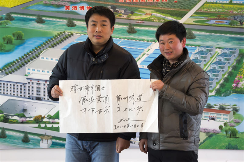 欢迎午宴在公司进行,公司总经理潘仕华先生参加接待,潘仕华总经理也介绍了古南丰黄酒近些年的发展历程,刘文总监对古南丰黄酒的口感及品质表达了偏爱和赞美之情,并即兴而发为古南丰题字“徽派黄酒 徽州味道 才下舌尖 又上心头”