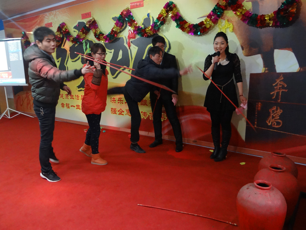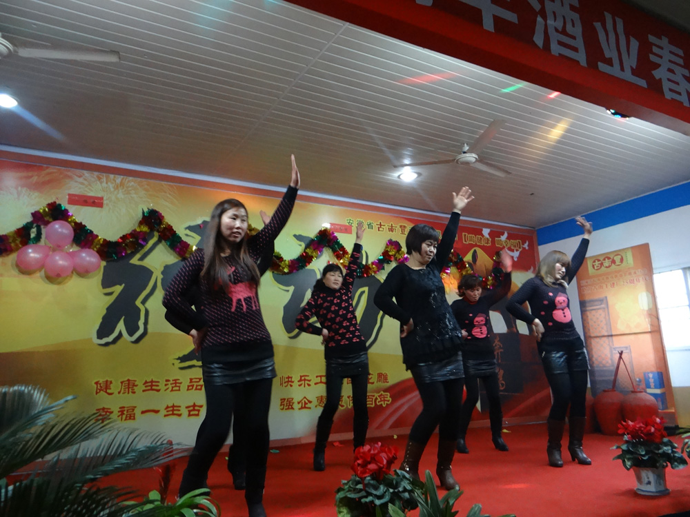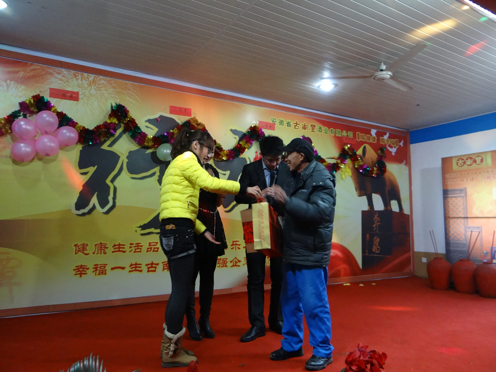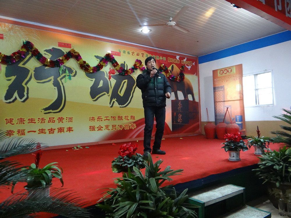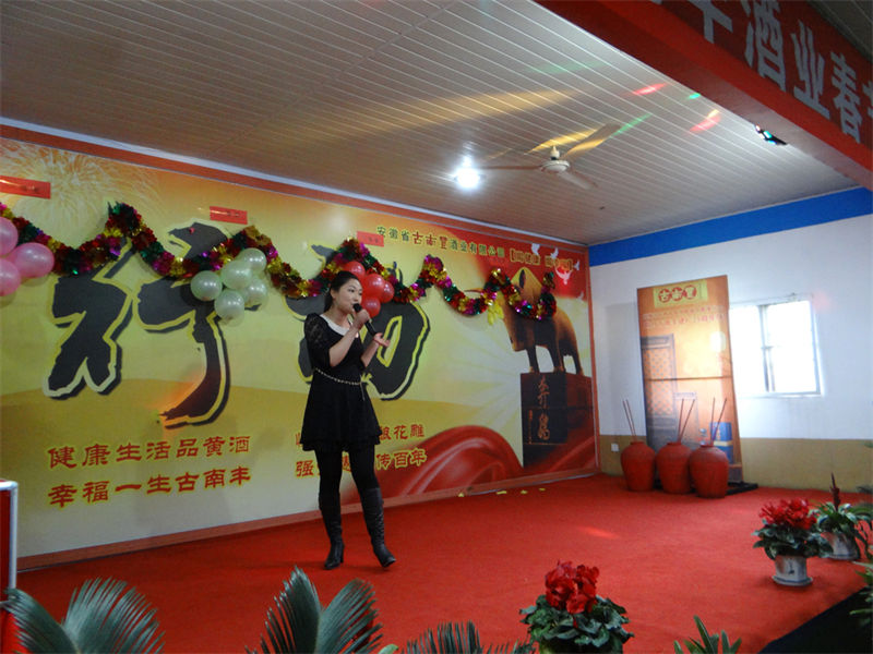 宴会开始前,董事长潘跃国致热情洋溢的祝酒辞,场面热闹非凡,大家举杯同庆,共迎美好新年。在精彩的文艺表演阶段,各个部门积极参与、各显专长,体现了公司的人才济济。文艺演出现场穿插了激动人心的抽奖环节,参与演出的员工现场抽取幸运者,20多份礼品等待归属,制造了一轮轮狂欢的高潮。演出最后在汪庆武倾情演唱的《古南丰之歌》中落幕,值得一提的是汪师傅出于对公司的热爱之情,自己为公司谱写了一首《徽派第一窖》并现场演唱,引起场下一阵阵掌声与欢呼。