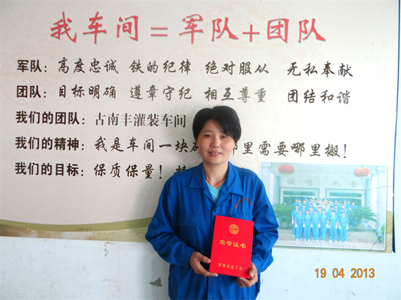 她凭着对公司的热爱,对工作的负责,抱着一颗感恩的心,努力地从一名普通的一线工人,到专业操作工,再到负责整个灌装组的组长,思想及行动逐步跟上公司发展的需求;在操作工的岗位上,爱动脑,勤动手;在车间技术改造上创造出一个又一个佳迹,使复杂枯燥的工作变的轻松愉快;在组长岗位上,灵活用人,平等待人,优化班子结构,提升工作效率,安排工作条理清楚,提出了一些很有见解的工作思路和方法。协助车间主管对每月生产的各项问题进行归纳统计分析,及时组织员工对当月出现的问题进行探讨分析,提出解决办法,为公司稳定生产奠定了基础工作。工作多年来始终本着正直、诚实、自我负责的原则,调动班组成员的工作积极性,确保各项工作保质保量的完成,曾多次在我司评比活动中荣获“十佳员工”及“劳模”称号。
