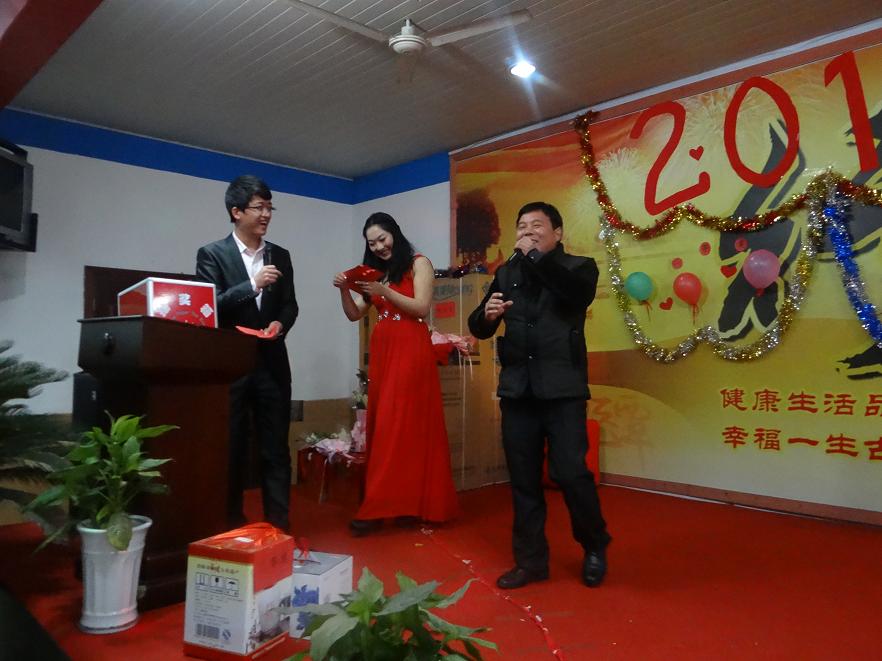 团拜会中董事长潘跃国为员工献上了洋溢的新春祝福,大家欢聚一堂、释放激情、载歌载舞,举杯欢度新春。期间不停断的抽奖环节更是将整个年会推上了高潮,员工们热情高涨,激情飞扬,尽情享受这欢乐、美好、祥和的幸福宴。在和谐、温馨、欢乐的气氛团拜会圆满落幕。