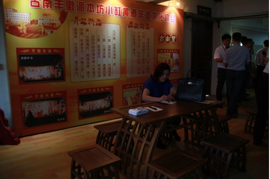 会议结束之后,全体与会人员乘坐大巴来到国家AAA级旅游景区——中国徽派黄酒(古南丰)绿色生态园。在导游的带领下,先后参观了蒸饭,发酵,榨酒,煎酒等工艺展示,并参观了古南丰中央藏酒库,切身体验到了古南丰独特的生产工艺。