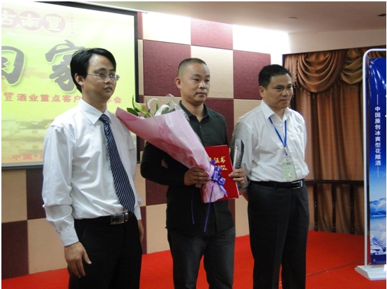 会议对13至14年度的四位优秀经销商进行了表彰颁奖,他们分别是天驾商行罗总,东润商贸蒋总,发辉商贸黄总和邮函商贸权总。