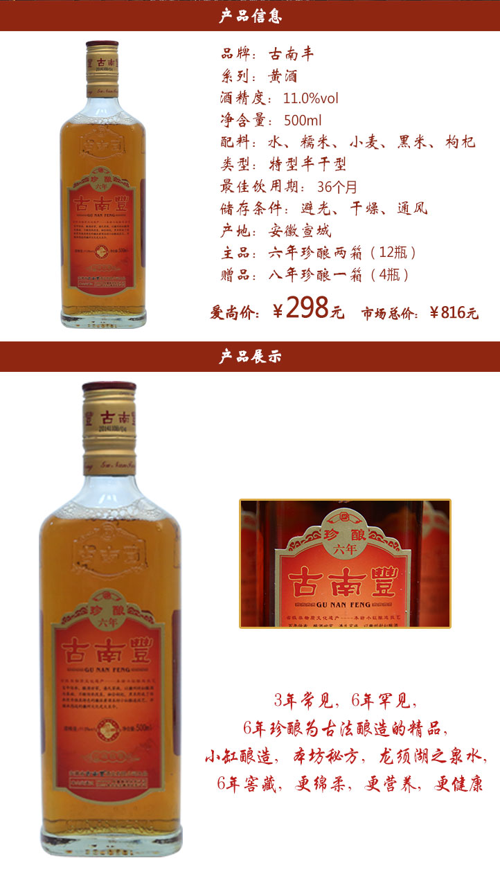 百年传承,酿酒世家古南丰酒业为了让广大消费者更加了解黄酒的功效和品尝到我们公司本坊小缸酿造的黄酒。我公司首次尝鲜,浙江与爱尚生活栏目合作共同推出全国黄酒售价电视购物平台产品:古南丰珍酿12+4超值组。