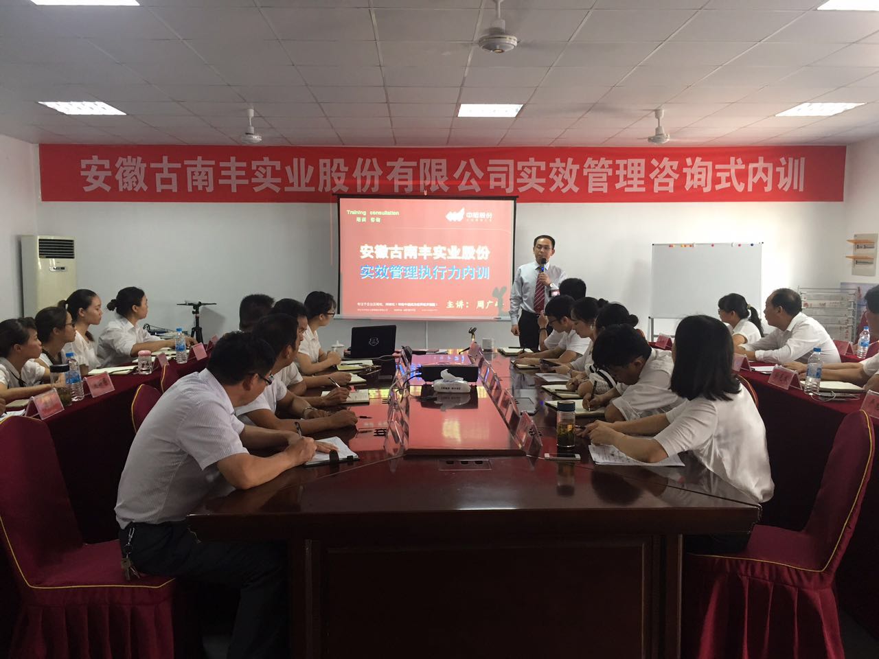 2017年8月3号上午8;30在职工活动中心由中旭股份周广峰老师为我们开展实效管理咨询式内训。首先由公司总经理潘仕华进行了发言,谈到管理上的心得,随后周广峰老师深入带领古南丰管理层们了解执行力、管理模式以及结果思维,期间相互之间的互动更是能够加深脑海记忆,深刻的了解管理的概念。管理学问博大精深,方法、手段只是一种形式,重要的是统一员工的思想,使上下级之间相互认同,真正走出企业执行力实现的瓶颈,达至共赢的目的!
