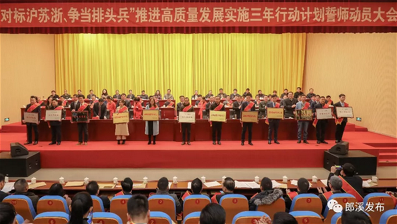 这是一次激励斗志、催人奋进的鼓劲会,也是一次定标明向、压实责任的落实会,更是一次凝聚精气神、建设新郎川的动员会,目的是营造发展至上的“好氛围”、唱响奋进实干的“主旋律”、发出攻坚克难的“动员令”,坚定不移落实“对标沪苏浙、争当排头兵”推进高质量发展实施三年行动计划,加快推进郎溪向高质量发展的轨道迈进。
