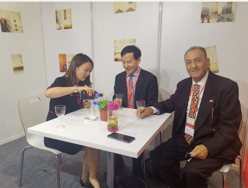 2019年5月23日,古南丰黄酒走出国门,参加了第六届中国(土耳其)古贸易博览会,在土耳其博览会上, 吸引不少外国友人驻足品尝,深受大家的称赞。在展会当天,中国驻土耳其大使馆一等秘书刘卫国先生,亲自莅临展位品鉴我们古南丰黄酒,这对于我们古南丰而言具有重大的划时代意义,代表着古南丰黄酒走出安徽,走出国门,一带一路走进土耳其。