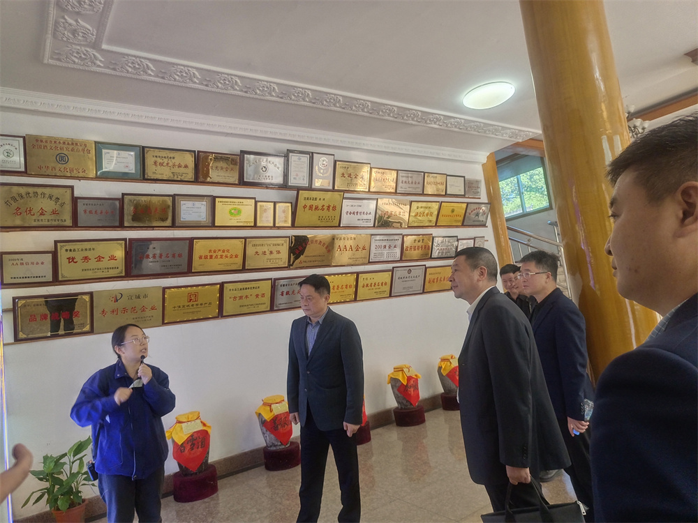 市督查指导组在潘总的陪同下先后参观了酿造工艺大楼、50吨储酒罐组及灌装车间。期间听取了企业的生产经营、资本运作、品牌建设等情况介绍,了解企业主要经营指标及对如何更好地利用资本市场发展意见建议。