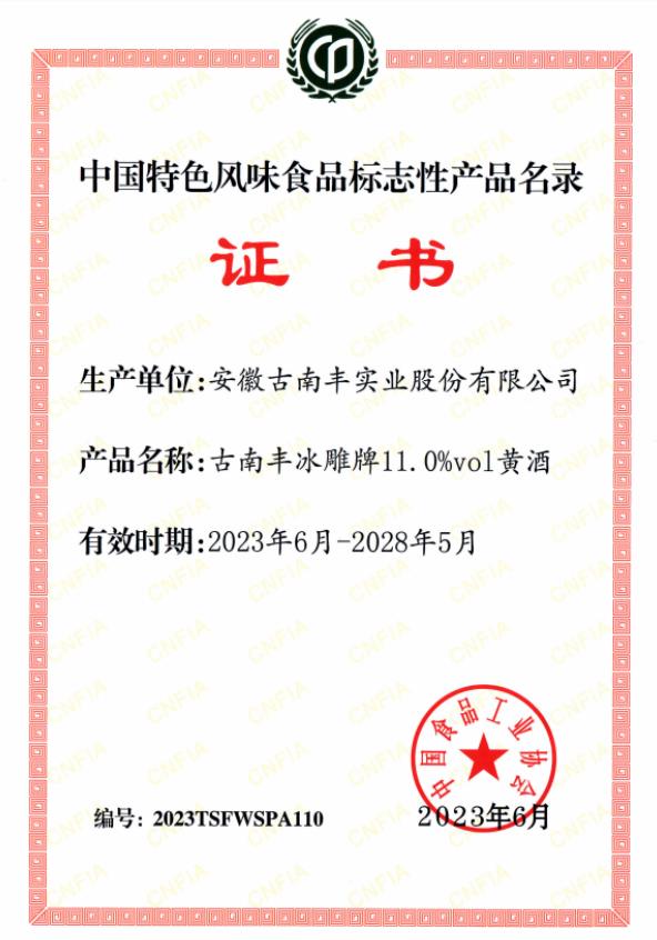 此次博览会,kb体育官方网站登录带来的参展品—冰雕黄酒,荣获“中国特色风味食品标志性产品名录”证书。