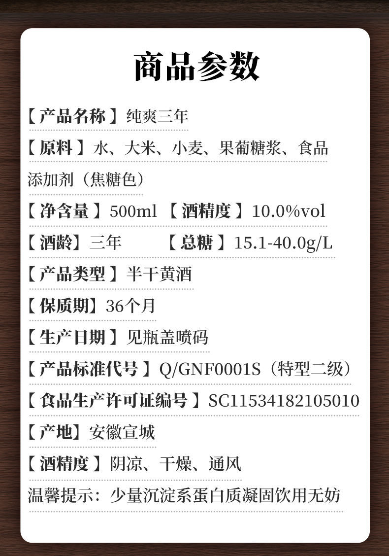 方塔纯爽三年陈黄酒